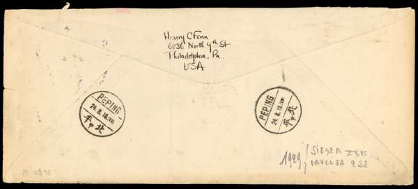 CHINA 1929 incoming Graf Zeppelin airmail envelope Philadelphia to Peiping