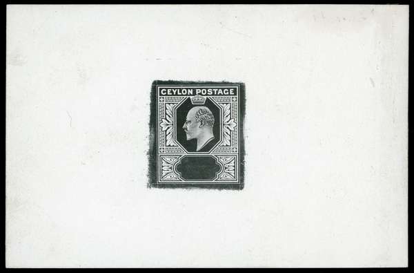 1903 KEVII master die proof, undenominated with uncleared value tablet and surround in black on glazed card (92 x 60mm) archival mounting on reverse and trivial marks in surround, otherwise fine, a rare and important proof