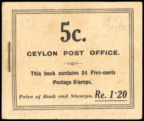 Booklets. 1932 1r20 booklet, black on grey cover, (Efandco Motors on back) incomplete booklet composed of (SG 341 5c purple, only 22 stamps present out of 24) in blocks of six, toned and dry large part o.g. no complete blocks, mostly as pairs or singles, still present in booklet, otherwise fine, a new discovery and the basis for the forthcoming ‘Part I’ 2026 catalogue listing. To be listed as SG SB8a (unpriced)