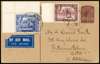 Postal Stationery. 1943 ¾a postcard with added ¾a and 2½a, 2 AUG 43 CDSs, to South Africa, civil censorship handstamp on front. Neat, ex Ian Warn