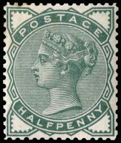 1887 ½d Deep green Pl.8 (Line Perf. 14). Very fine unused p art o.g. line perforated imprimatur produced for inclusion in the 1887 Stamp Committee presentation album. Only 36 albums were originally produced, many of which are in institutional collections or simply lost. Very rare. See Specialised Vol.1 Catalogue pg.257. 1991 BPA Cert. SG 164var