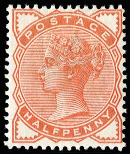 1880 1/2d Colour trial. Very fine perforated example printed on white gummed Crown watermarked paper in orange. Very scarce. SG 165var