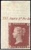 1854 1d red brown Plate 192 (AA) corner marginal imperforate imprimatur, SG 17var