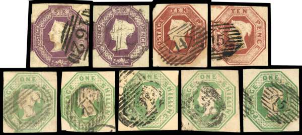 1847-54 Embossed used selection comprising 6d (2), 10d (2) and 1s (5), all mainly with three margins. Condition variable. SG Btwn 54/61