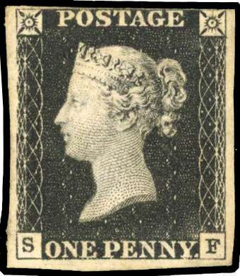 1840 1d black, plate 4 (SF), four close to good margins, unused and regummed, cut in at upper right and with faults, still a presentable example of this classic stamp. SG 2