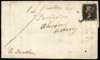 1840 1d Black Pl.5 (HA). Entire sent and re-addressed