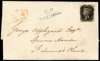 1841 entire letter sent locally within in London, bearing 1d black Plate 6 (BL) four clear to good margins, tied by experimental black MC, with ‘T.P. Cheapside’ h/s and backstamped by arrival for JA 20, fine. SG 2
