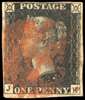 1840 1d black Plate 9 (JK), four margins, smudged red MC SG 2