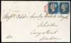 1840 cover to London franked by 2d blue pair