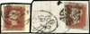 1841 1d red-brown (CD & LG). Two four-margined examples both tied to piece. The first example (CD) tied by a pair of black oval handstamps and the second example tied by a black MC with a similar oval handstamp at left. CD with a small vertical bend. Scarce and unusual.