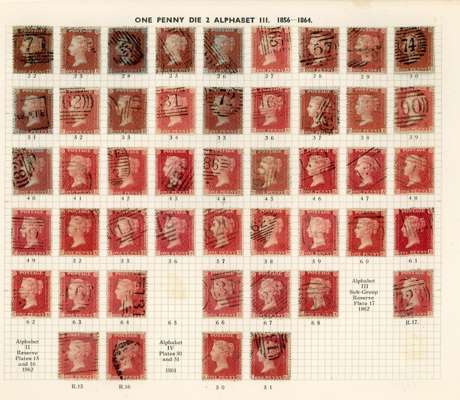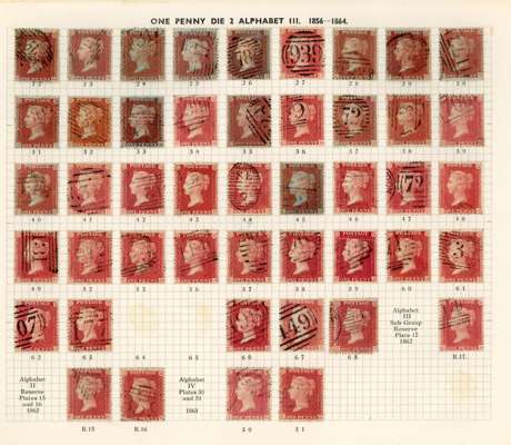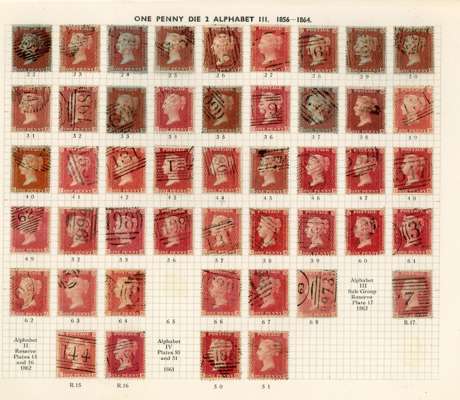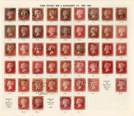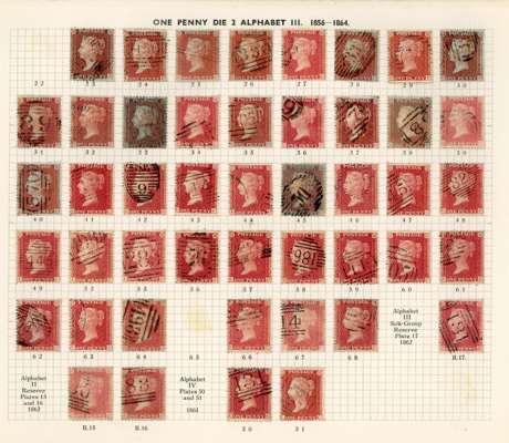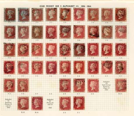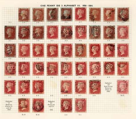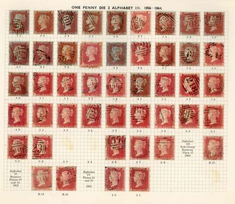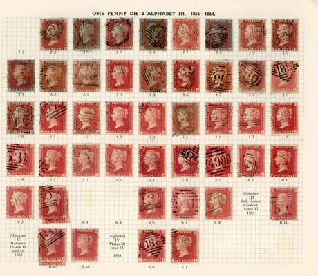 GB 1856-64 1d reds from Plates 22 - R17, the C Row