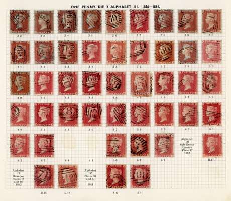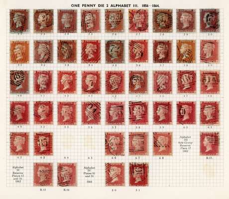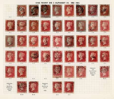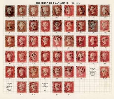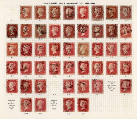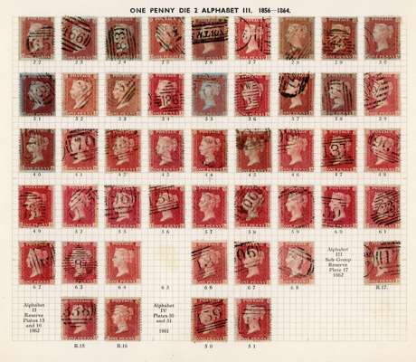 GB 1856-64 1d reds from Plates 22 - R17, the D Row