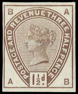 1884 1½d colour trial imperforate, on Crown-watermarked paper. Superb o.g. example printed in pale purple on white watermarked paper, lettered AB. Very rare, probably no more than two or three examples exist in private hands.