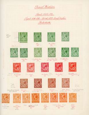 1912-24 ½d to 1s specialised watermark Simple Cypher duplicated range of annotated shades on album leaves, mainly fine lightly mounted o.g (69) SG between 351/396