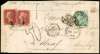 GB Used Abroad; Ecuador. 1874 envelope to France (reduced and opened at top and right, no backflap), bearing two examples of 1d rose-red Plate 138 (not listed in Part 1) and 1s green Plate 9, each tied by partially faint but identifiable C41 numerals of Guayaquil. Sent via Panama and Southampton, various markings including Panama-Transit cds, accountancy mark, Calais transit and handstruck '90'. A busy cover and rather attractive, despite the truncations. SG Z3, Z28.
