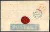 1840 2d lettersheet to Birmingham cancelled neatly by 1844 Edinburgh ‘131’ barred numeral, backstamped with Edinburgh (29.4) despatch cds in orange red and Birmingham (30.4) arrival cds in blue. SG ME3