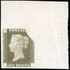 1840 1d Rainbow trial (State 3), upper right corner example in drab on thick bluish laid paper, diagonal crease at far right well clear of design, otherwise fine and scarce. Spec. DP20d cat £2500