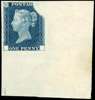 1840 1d Rainbow trial (State 3b), Very fine imperforate four margin bottom right hand corner marginal example printed in deep blue on white wove paper. Spec. DP20(3)b cat £2,250.