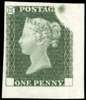 1840 1d Rainbow trial (State 3) in dark olive-green, on thick blush laid paper, dipped in prussiate of potash, fine and scarce. Spec. DP20e cat £2500