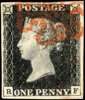 1840 1d black Plate 4 (RF) four good to large margins, used by crisp strike from orange-red MC, leaving a clear profile, most attractive. RPS Cert (2001) SG 2 cat £350