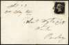 GB: POSTAL HISTORY: 1840 1d black, plate 4 (LJ), just touched at top to good margins, on cover to Paisley