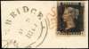 Great Britain 1d black Plate 5 (BF) used on piece SG 2