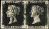 GB 1840 1d intense black, plate 5 (TC-TD) horizontal pair used