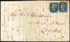 GB: POSTAL HISTORY: 1840 2d pale blue plate 1, pair on cover