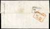 1840 2d blue, Plate 1, horizontal pair (QE-QF), just cut into at lower right to large margins and nearly severed between pair, on entire cover to Falkirk, both tied by the distinctive Stirling black Maltese Cross, backstamped by Stirling despatch for 25 MY 1842 and Falkirk arrival (26.5) boxed handstamp; refolded and a couple of vertical filing folds, one through the right stamp. A very rare cover. RPS Certificate (2003), SG Spec DS5vn