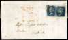 GB 1840 2d blue, plate 1, horizontal pair (QE-QF), on cover tied by Stirling Maltese crosses