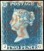 GB 1840 2d blue, plate 2 (JG), cancelled by light red Maltese cross