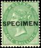 1856 1s deep green, optd “SPECIMEN” type 4 mint part o.g. Lovely deep colour. SG 71s cat £1000