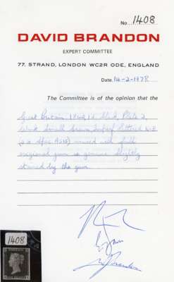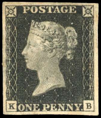 1840 1d black, Pl. 2 (KB), mint, large part o.g. with four fine even margins, slight gum toning, still a very attractive example. Brandon cert (1978), SG 2, £7,500.