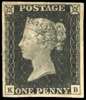 GB 1840 1d black, Pl. 2 (KB), mint SG 2
