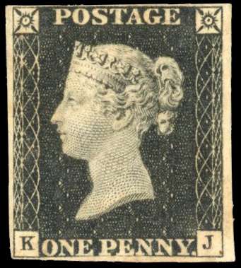 1840 1d black, Pl. 2 (KJ), mint, unmounted o.g., with four close to good margins. Slight gum toning, still a good example and scarce in this condition. Brandon cert (1978), SG 2, £7,500.