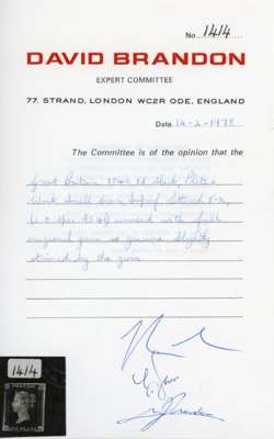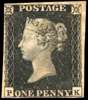1840 1d black, Pl. 6 (PK), with three good margins, just cut in at upper left, mint, unmounted o.g., slightly toned, still a very presentable example of this iconic stamp. Brandon cert (1978), SG 2, £8,000.