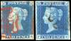1840 2d blue, plate 1 (IK), close to good margins, neatly tied by deep red Maltese crosses, slight thin at top in margin. Also 1841 2d blue, plate 3, good to large margins, neatly by black Maltese cross leaving Queen's profile clear. An attractive pair. SG 5, 14