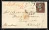1841-53 1d red-brown (AK), cut into to good margins on mourning cover tied by black Maltese Cross and small part GLOUCESTER/STATION datestamp for 9 FE 1843, at top red crayon ’Missent to', the reverse with Dursley transit, despatch and unclear "Penny Post" marking. Fine and attractive.