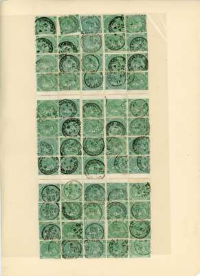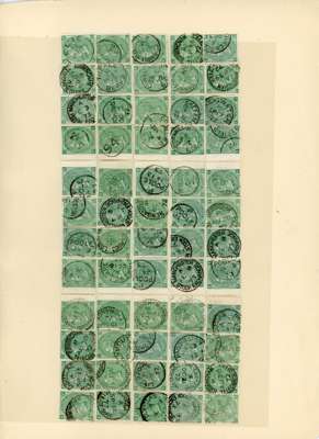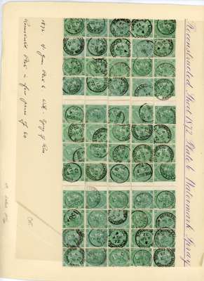1867-80 1s green, Pl. 6 (AA-OL), complete sheet reconstruction of 240 examples, all fine used by cds cancels and the odd telegraphic cancel. A remarkable undertaking and a very attractive lot. SG 117, cat £10,800.