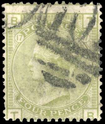 GB 1873-80 4d sage-green Plate 17 abnormal SG 153