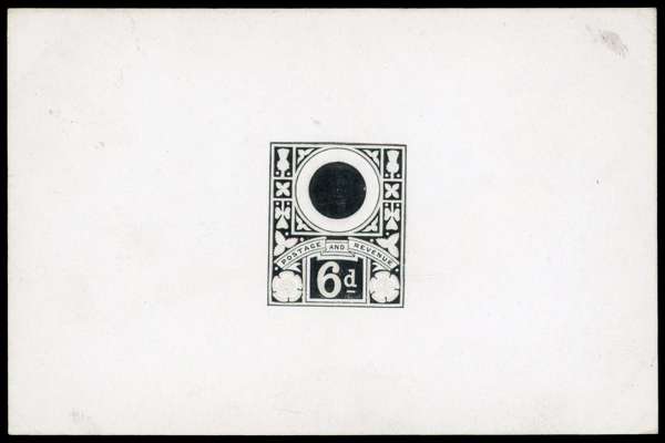 1887 Jubilee 6d die proof, type B unadopted design, embossed on glazed card (92x60mm) very fine and scarce. SG 208var
