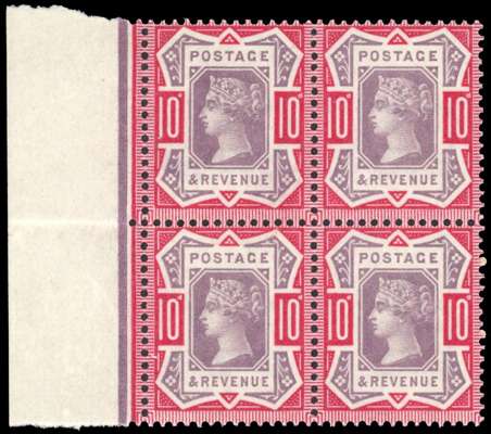 10d Jubilee dull purple and carmine left-hand marginal block of four, horizontally folded otherwise fine and fresh full o.g.