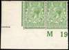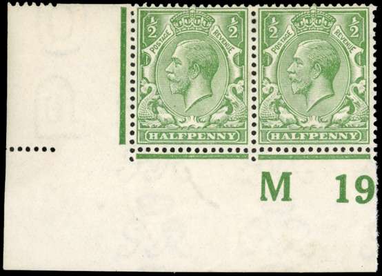 GB 1912–24 Royal Cypher ½d very pale bright yellow green, mint control M19 horizontal pair mint