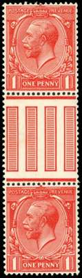 GB 1912-24 Royal Cypher 1d very deep dull vermilion, unmounted mint vertical interpanneau gutter pair