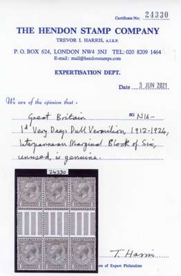 1912-24 Royal Cypher 1d very deep dull vermilion, unmounted mint vertical interpanneau gutter pair with lovely deep colour. Hendon Stamp Company opinion. SG 358 var, Spec N16 (7) var