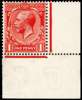 GB 1912–24 Royal Cypher 1d intense bright carmine-red, mint lower right corner example