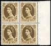 1958 Multiple Crowns, cream paper, 1s bistre-brown, mint unmounted right marginal block of four variety ‘DOUBLE IMPRESSION’, fine. SG 584 var, Spec S138a