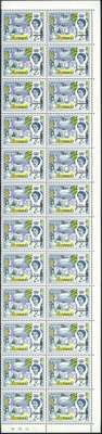 Note: One sheet of this value is recorded with the four lower rows without surcharge caused by the sheet being wrongly inserted into the press. The surcharge for these four rows was consequently imprinted on the printing roller and this resulted in the next sheet receiving the surcharge normally on the front and additionally on the reverse in respect of the lower four rows
