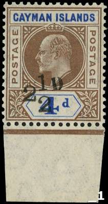 1908 2½d on 4d brown and blue lower marginal example unmounted o.g., light guarantee handstamp on reverse. Very fresh. BPA Certificate (1956). SG 35, £1800