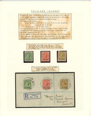 Falkland Islands 1918-20 ‘WAR STAMP’ overprints mainly mint selection arranged on display...